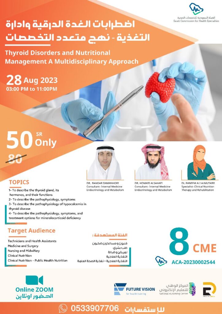 ⏰معتمدة بـ 8 ساعات 📢 اضطرابات الغدة الدرقية وادارة التغذية - نهج متعدد التخصصات 💻 أونلاين
