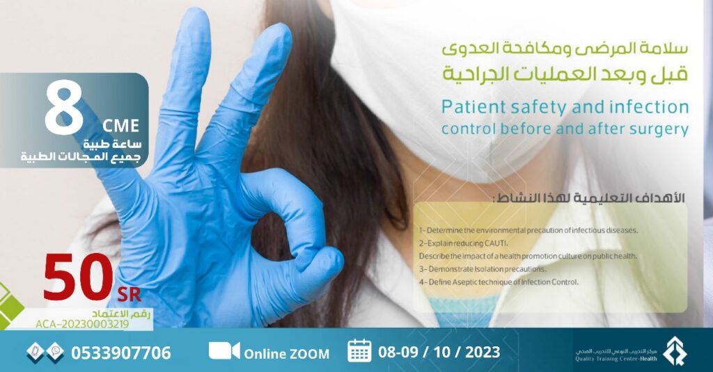 ⏰معتمدة بـ 8 ساعات 📢🛑 سلامة المرضى ومكافحة العدوى قبل وبعد العمليات الجراحيه 🛑 💻 أونلاين